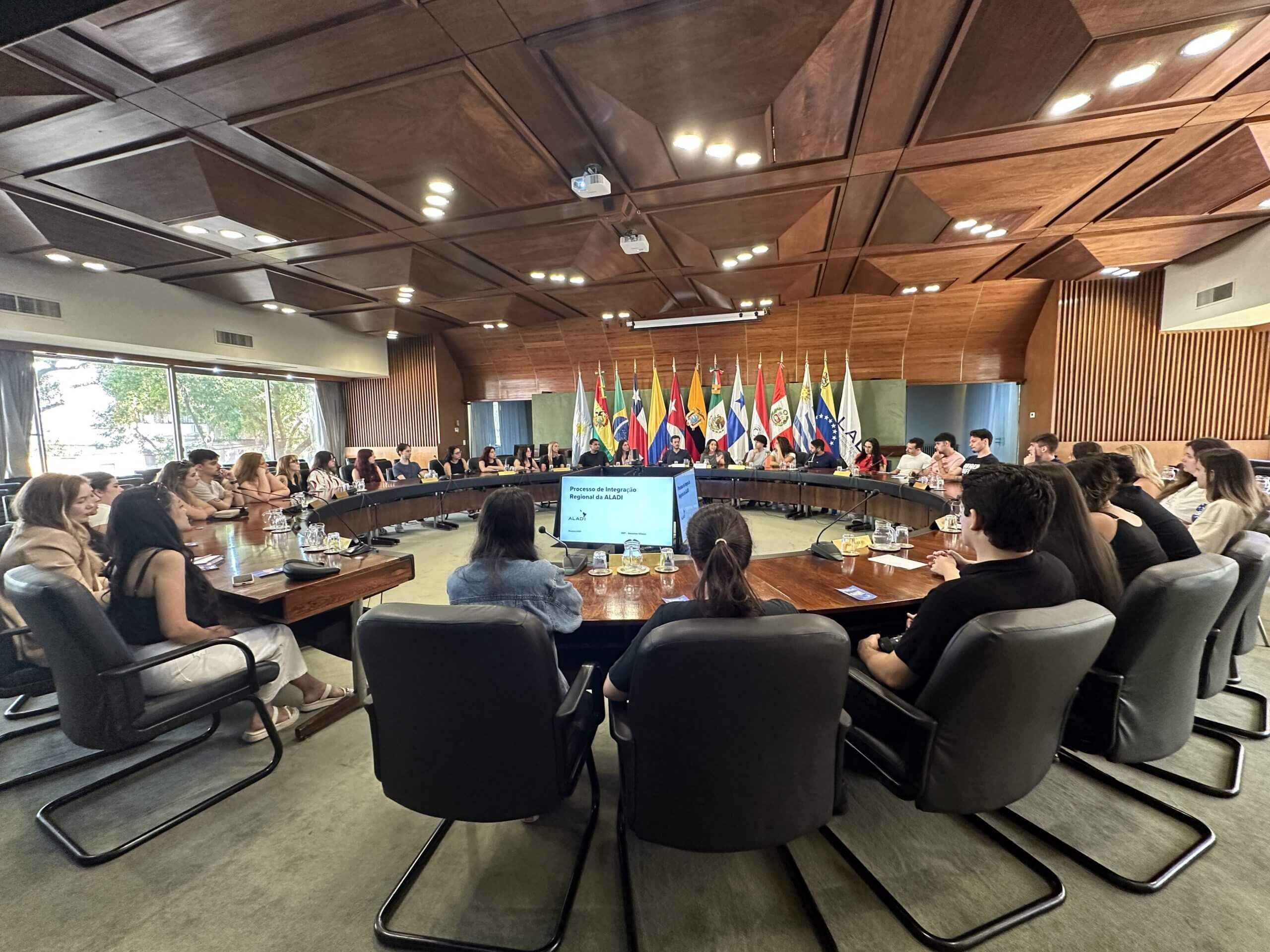 Cada año, la Secretaría General de la ALADI recibe delegaciones de estudiantes universitarios de los países miembros en su sede. Durante estas visitas, los funcionarios de la ALADI imparten clases enfocadas en aspectos clave del proceso de integración, previamente acordados con los académicos responsables de cada delegación.